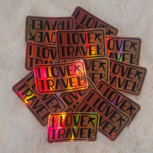 I Love Travel Iridescent Holographic Sticker