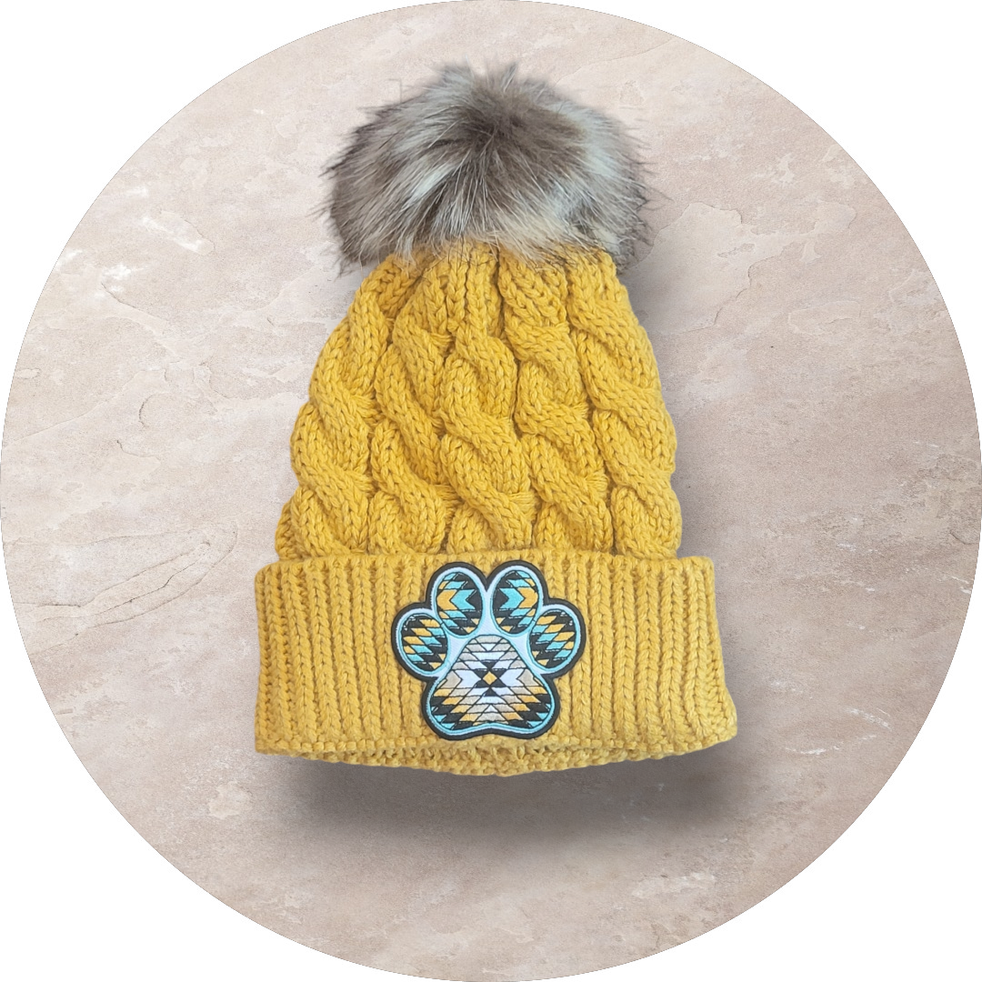 Brighten up your wardrobe with Gifts for Paradise's Yellow Pawprint Beanie! This vibrant yellow, woven beanie features a unique Aztec pawprint patch, adding a touch of playful elegance to your look. Expertly crafted for both comfort and style, it’s perfect for any casual outing or as a thoughtful gift. Elevate your accessory collection with this versatile and eye-catching piece, exclusively at Gifts for Paradise.