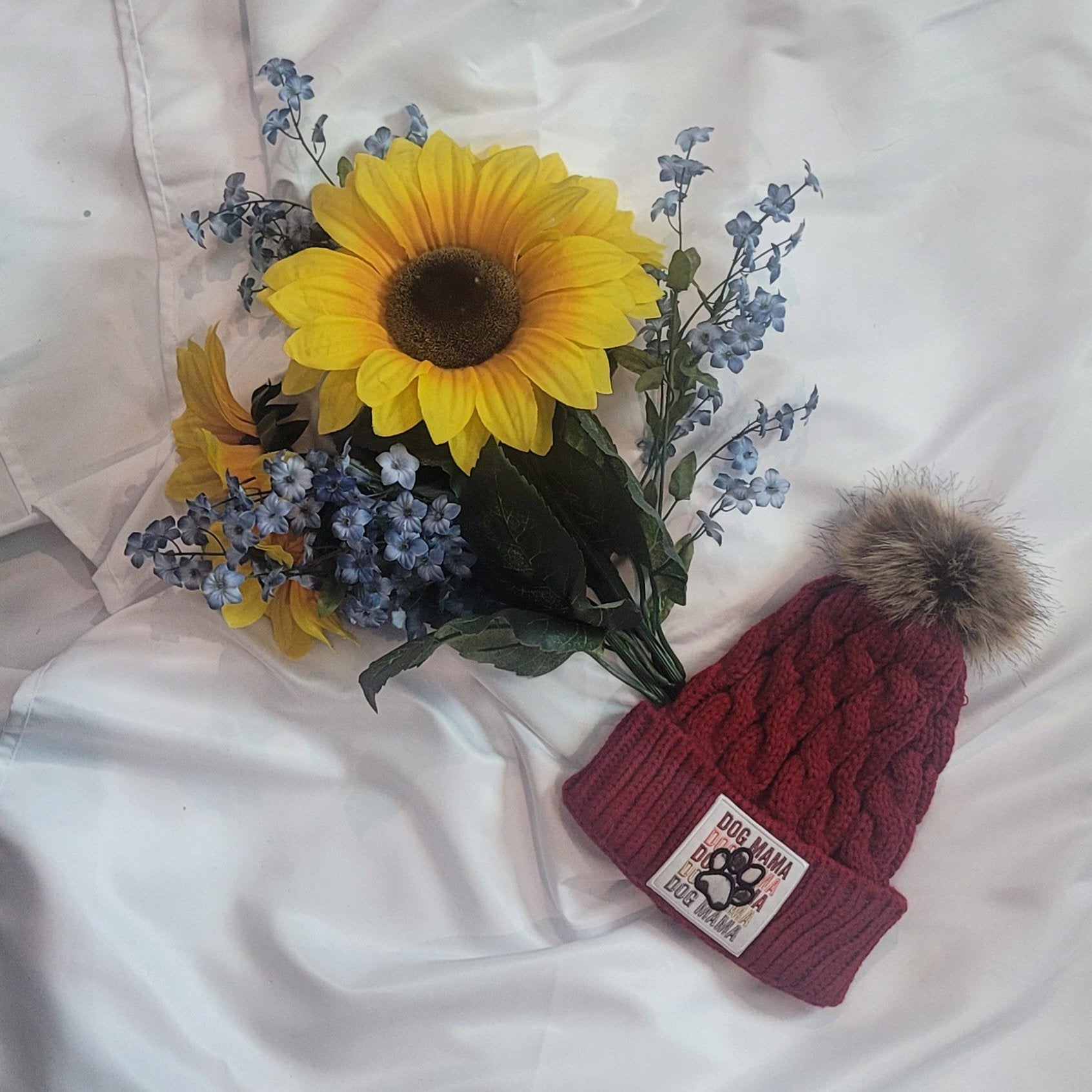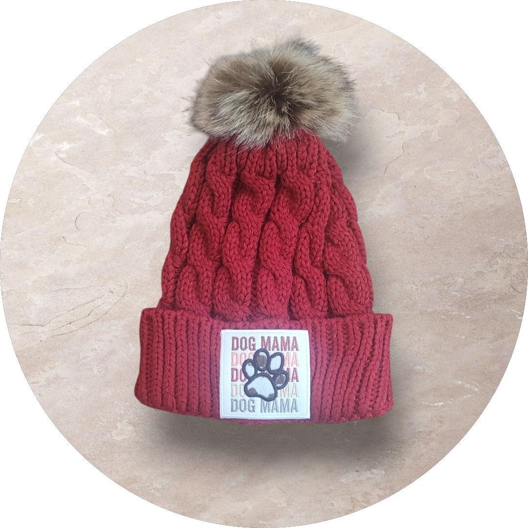 Show off your love for your fur babies with this adorable Dog Mama beanie! Crafted in a rich burgundy hue with a cozy woven pattern, this beanie features a custom patch that proudly declares your dog-mom status. The patch includes a fuzzy pawprint, adding a soft, dynamic touch that brings this piece to life. Perfect for dog walks, casual outings, or anytime you want to wear your love for your pup, this beanie is a must-have for every proud Dog Mama