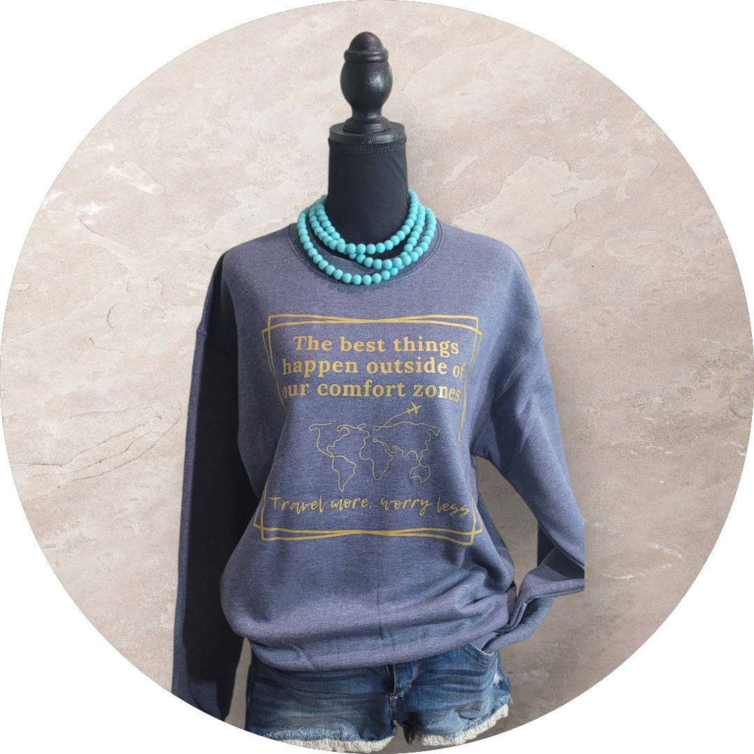 "Travel More, Worry Less" Crew Neck