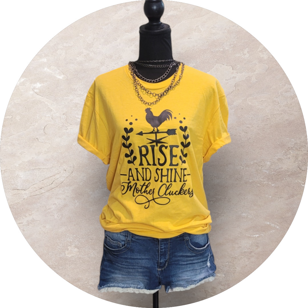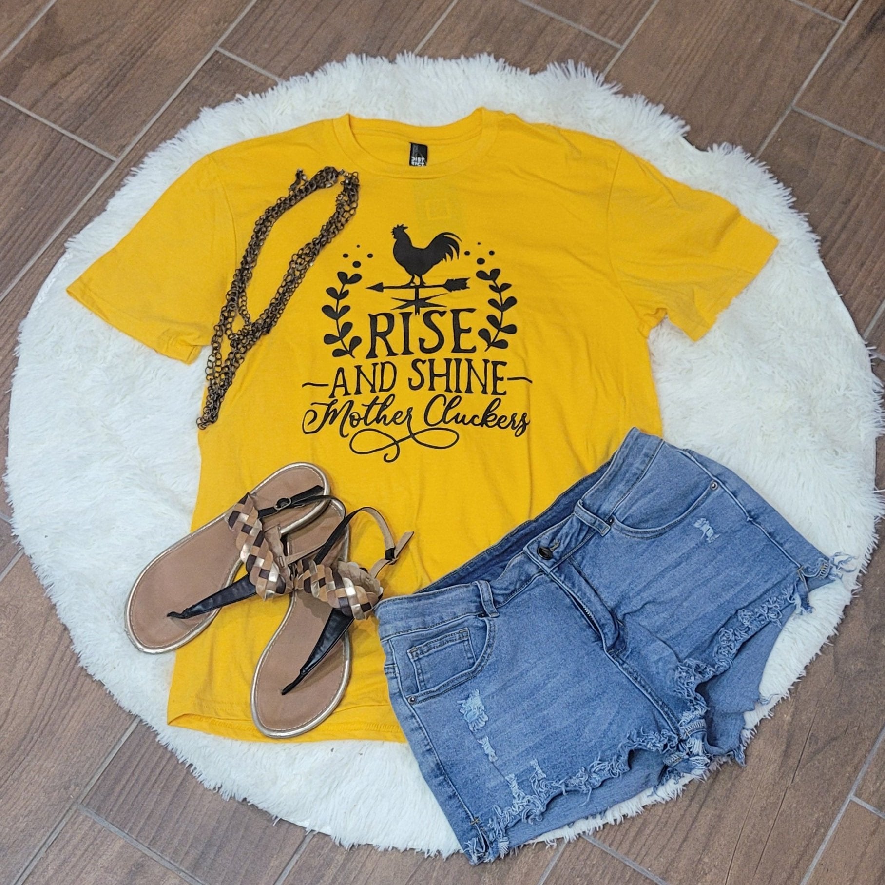 Get ready to start your day with a smile (and maybe even a laugh) with our Rise and Shine Tee! This buttery soft, bright yellow t-shirt is perfect for anyone looking for a fun and quirky addition to their wardrobe. And with its unisex sizing, it's a great option for anyone and everyone. Plus, who doesn't love a good pun?